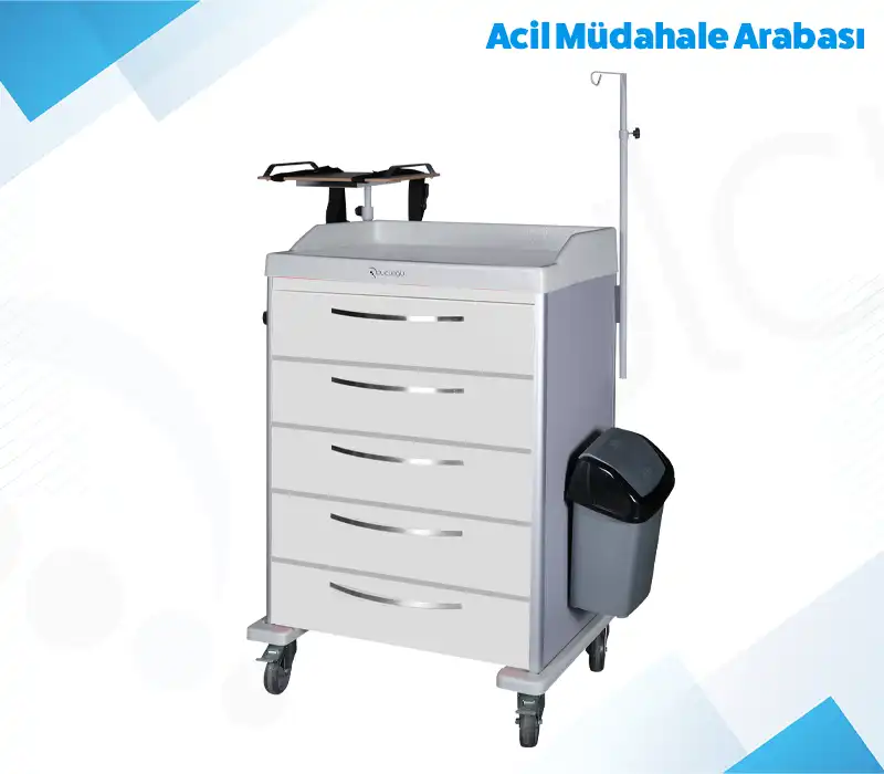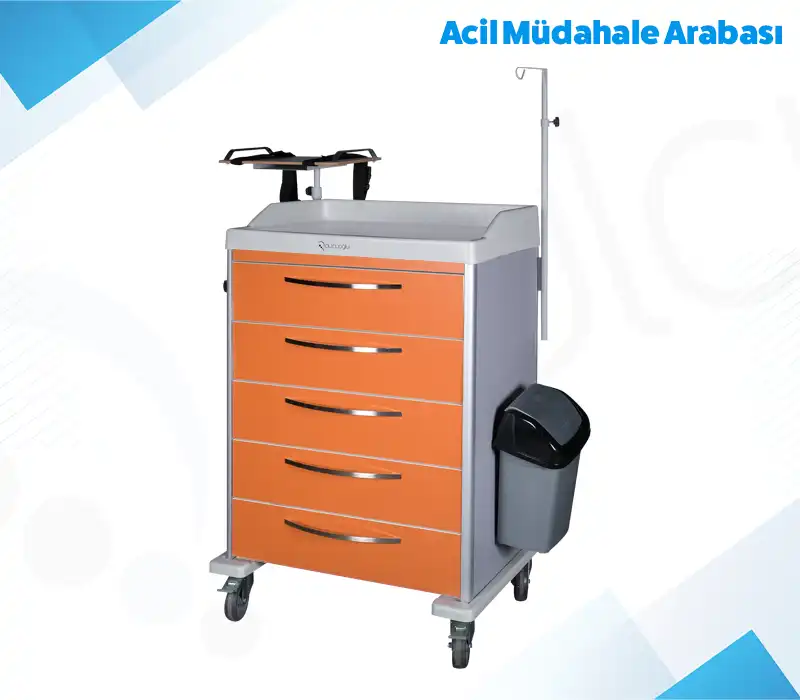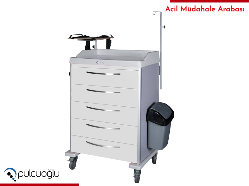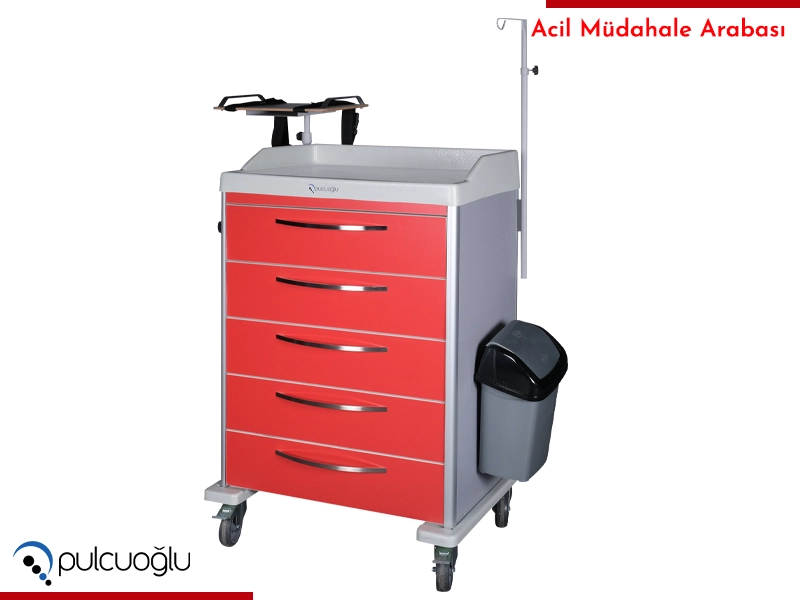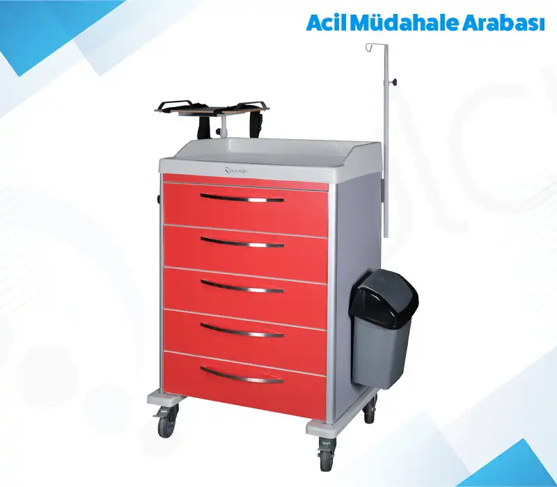 Acil müdahale ve pansuman arabası, acil durumlarda veya pansuman işlemlerinde tıbbi malzemelerin taşınması ve depolanması için özel olarak tasarlanmıştır. ABS malzemeden üretilmiş dayanıklı ve hafif bir yapıya sahiptir. Teleskobik raylı çekmeceler ve alüminyum gövde, düzenli ve kolay erişilebilir bir depolama sağlar.